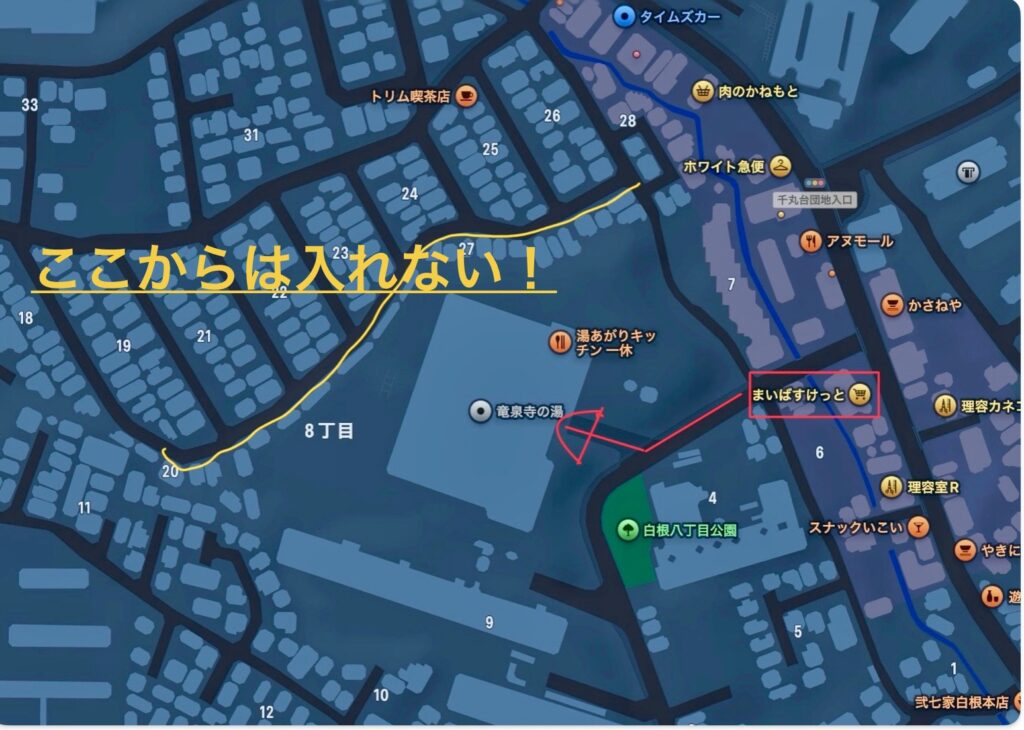 対処法としては、交差点の”まいばすけっと”にマップを合わせていくと良さそうです。